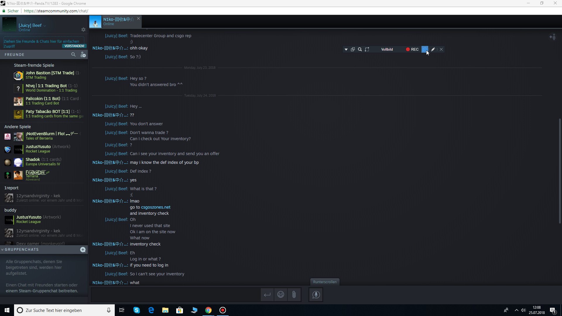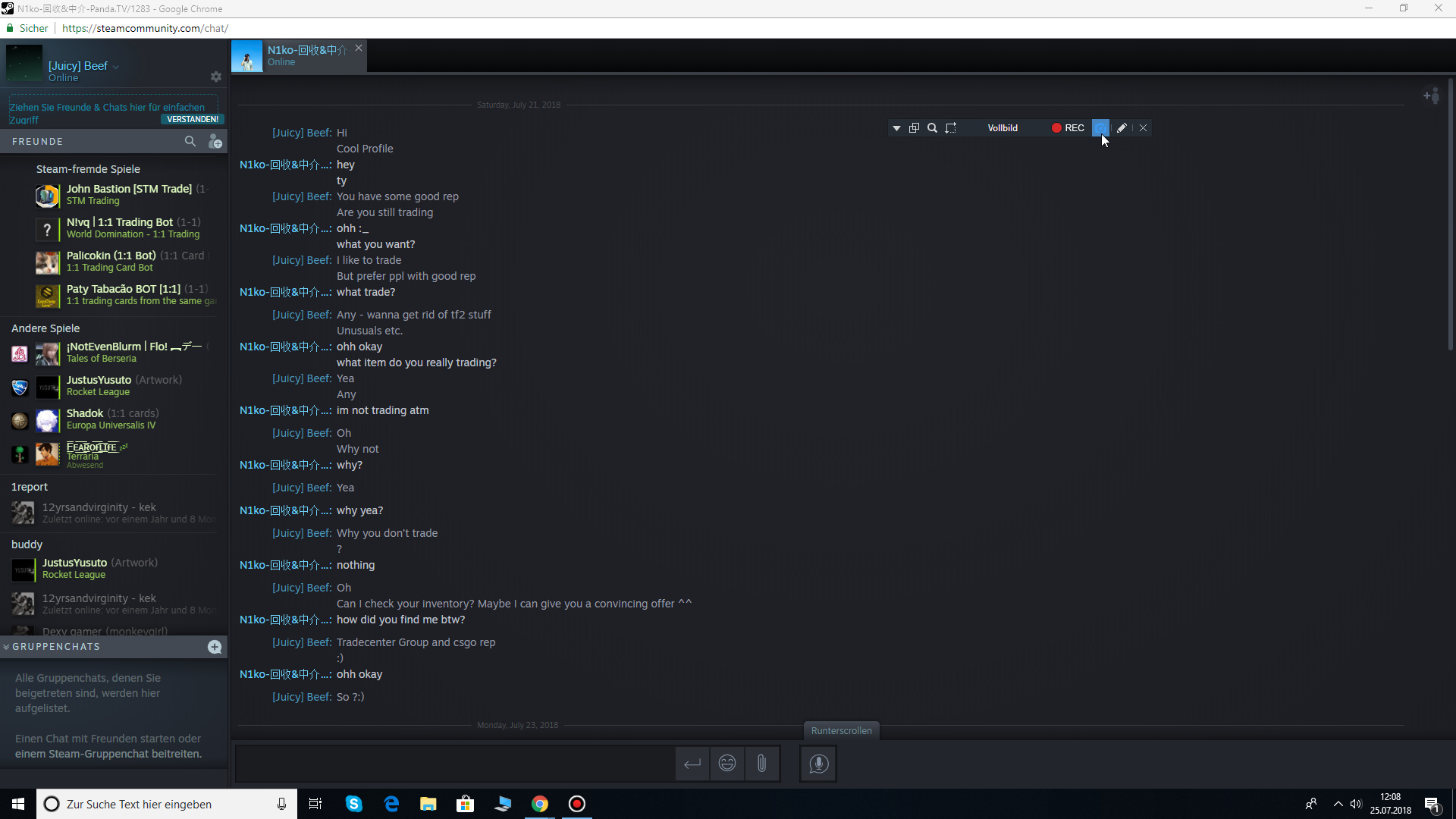 Most of the time, this shady dude ignores the chat, he almost changes his name and pic every day, I assume he is impersonating other traders.