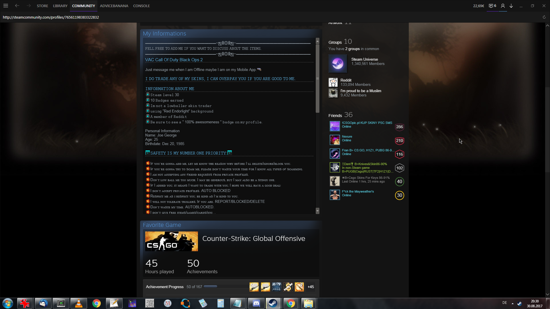 | steamname: Joe Skins.Trade✔